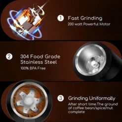 – Multifunción, muele: café, especias secas, frutos secos, semillas y granos.